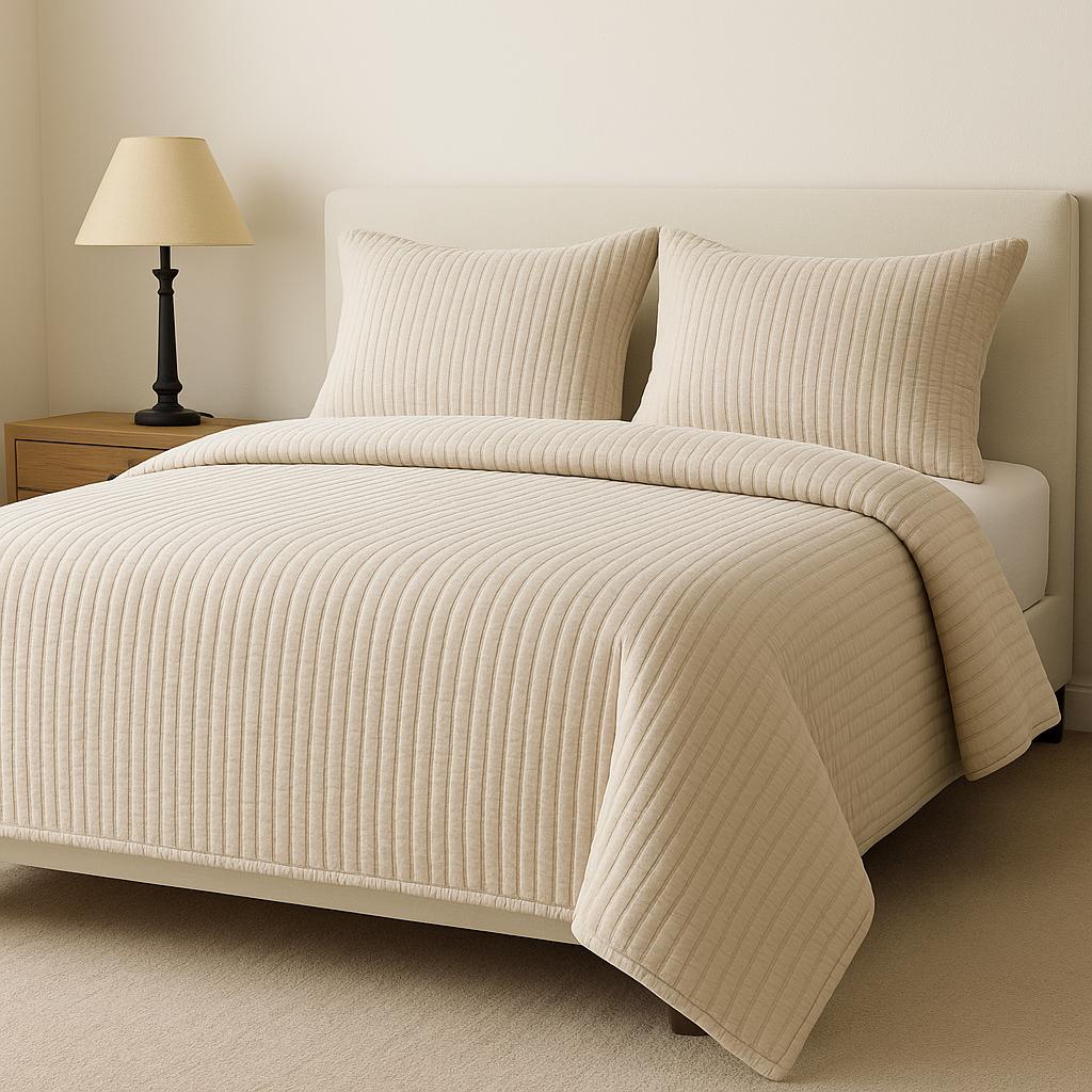 نعومة من الخارج، قطن طبيعي من الداخل، وتصميم بخطوط مستقيمة أنيقة يغيّر شكل غرفة نومك ويمنحك نومًا هادئًا ومريحًا.